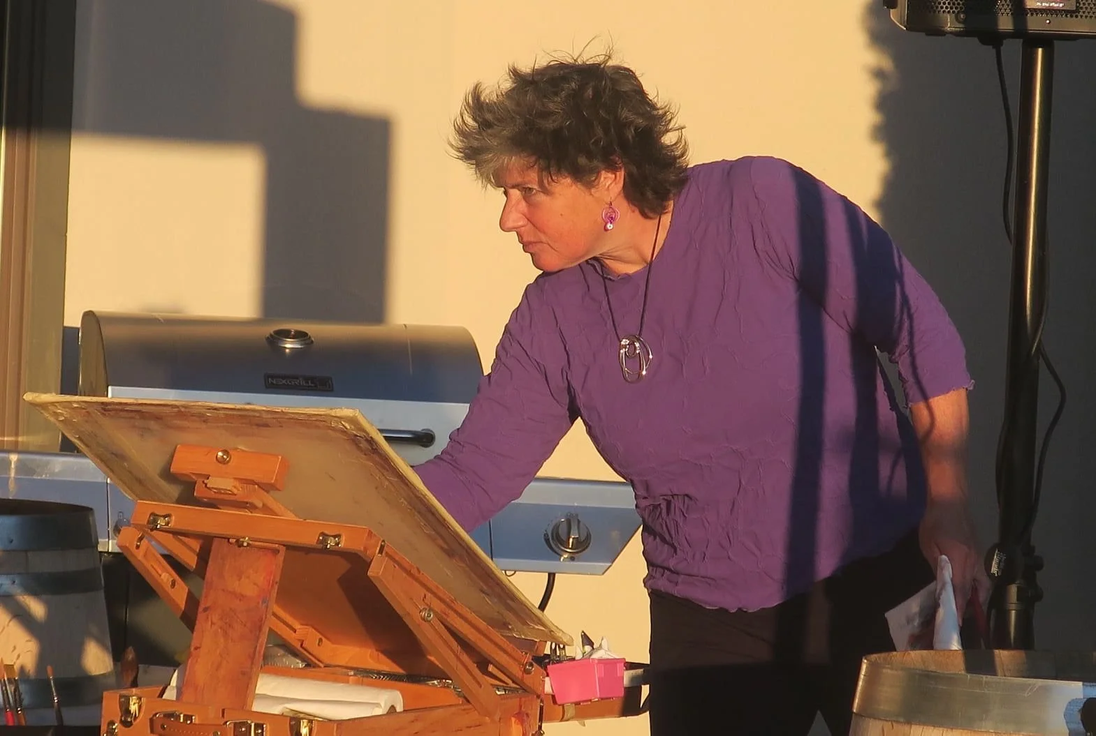 Lisa paints what inspires her, such as cafes or chefs in the kitchen. She also loves to capture the energy of a city in her vibrant street scenes, and paints many en plein air, at night. Lisa paints live on the bandstand as the artist in residence for The Alluvion’s Jazz 4 All Thursday series, as well as Chateau Chantal’s Jazz at Sunset, every Thursday in Summer.